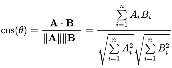 - 두 벡터 사이 각도의 코사인값을 이용하여 측정하는 값