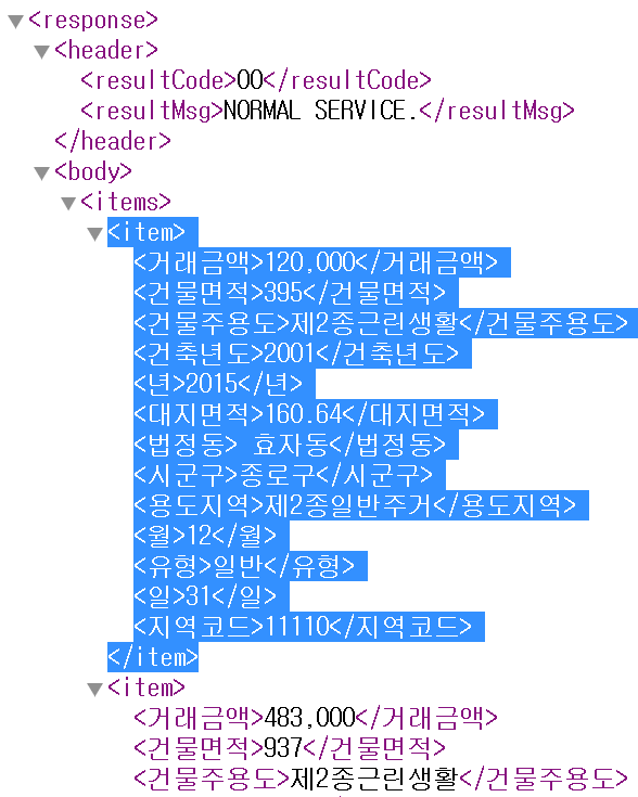 print('거래 일자 :', item.find('년').get_text(), item.find('월').get_text(), item.find('일').get_text())