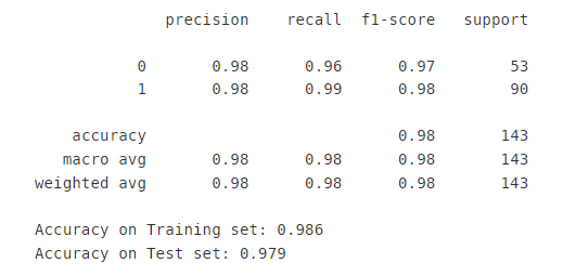 classification_report(y_test, grid_predictions)를 통해 Precision, Recall, F-1 score 확인 가능