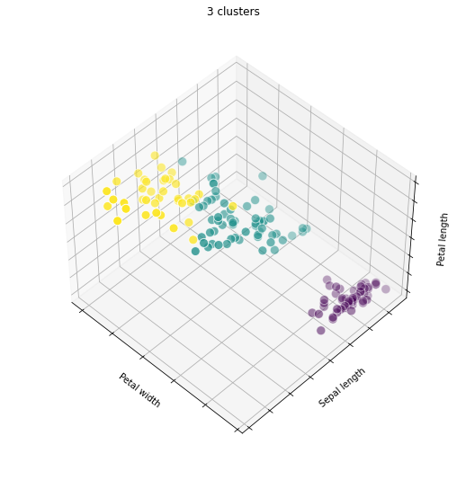ax.scatter(X[:, 3], X[:, 0], X[:, 2], c=labels.astype(np.float), edgecolor='w', s=100)