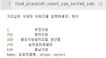 similar_indexes = sorted_ind[keywords_index, :(top_n)] # 해당 index와 유사도가 높은 순서대로 상위 n개 추출